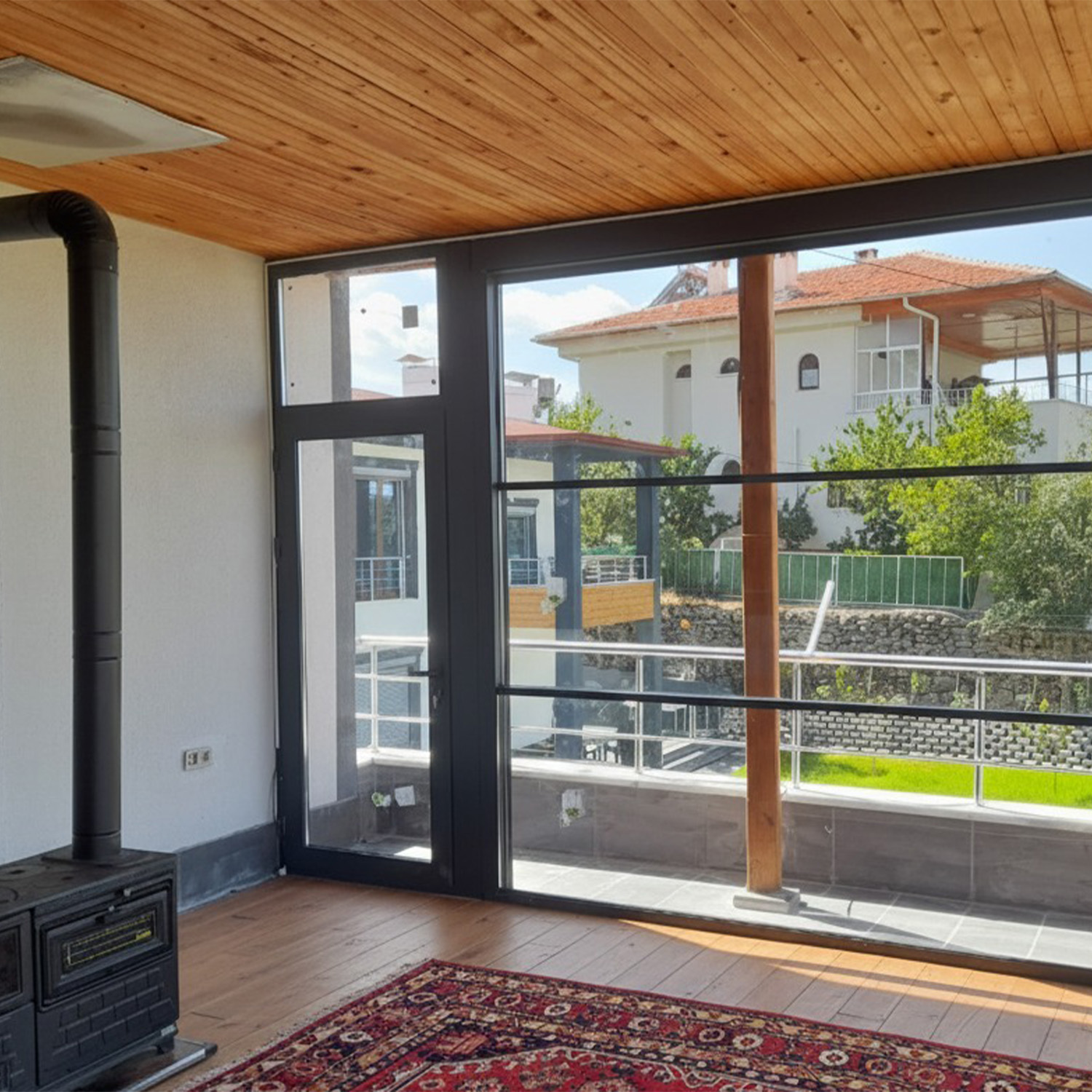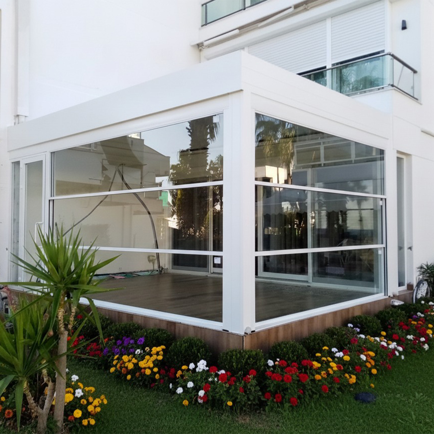 Dikey yönde hareket eden cam panelleriyle dış mekânlarda konfor ve estetiği bir araya getirir. Uzaktan kumandalı motor sistemiyle kolayca kontrol edilebilir, start-stop teknolojisi sayesinde istenilen noktada durdurulabilir. Isıcamlı veya tek cam seçenekleriyle dört mevsim kullanılabilir, rüzgâr, yağmur ve soğuğa karşı tam koruma sağlarken ferah ve aydınlık yaşam alanları oluşturur.